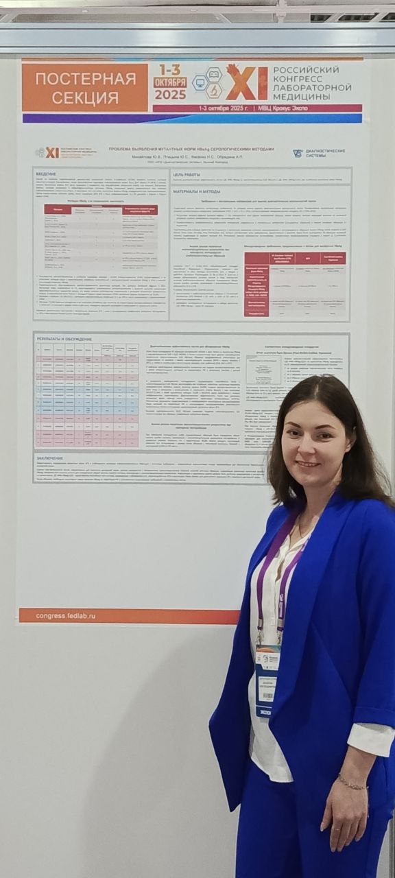 В рамках выставки компания представила гостям и участникам Саммита различные направления развития продуктовой линейки и новинки оборудования в области ИХЛА-диагностики. Значительный интерес среди клиентов компании и посетителей Саммита вызвала линейка ИХЛА-анализаторов – компактные и высокопроизводительные решения для автоматизации рабочих процессов лаборатории любого уровня, независимо от потока и широты проводимых исследований.В ходе тематических секций Конгресса был рассмотрен широкий спектр вопросов применения лабораторных исследований в различных клинических областях. Вместе с тем, в научной программе Конгресса в секции «Инфекционные заболевания: этиология, микробиологическая диагностика и профилактика» был представлен в электронном виде и очно постерный доклад «Проблема выявления мутантных форм HBsAg серологическими методами». Представленный материал вызвал живой интерес у посетителей мероприятия. Основные тезисы сообщения представлены в Сборнике материалов научно-практических конференций в рамках XI Российского конгресса лабораторной медицины (РКЛМ 2025) (https://npods.ru/articles/stati/GEPATIT_V/).