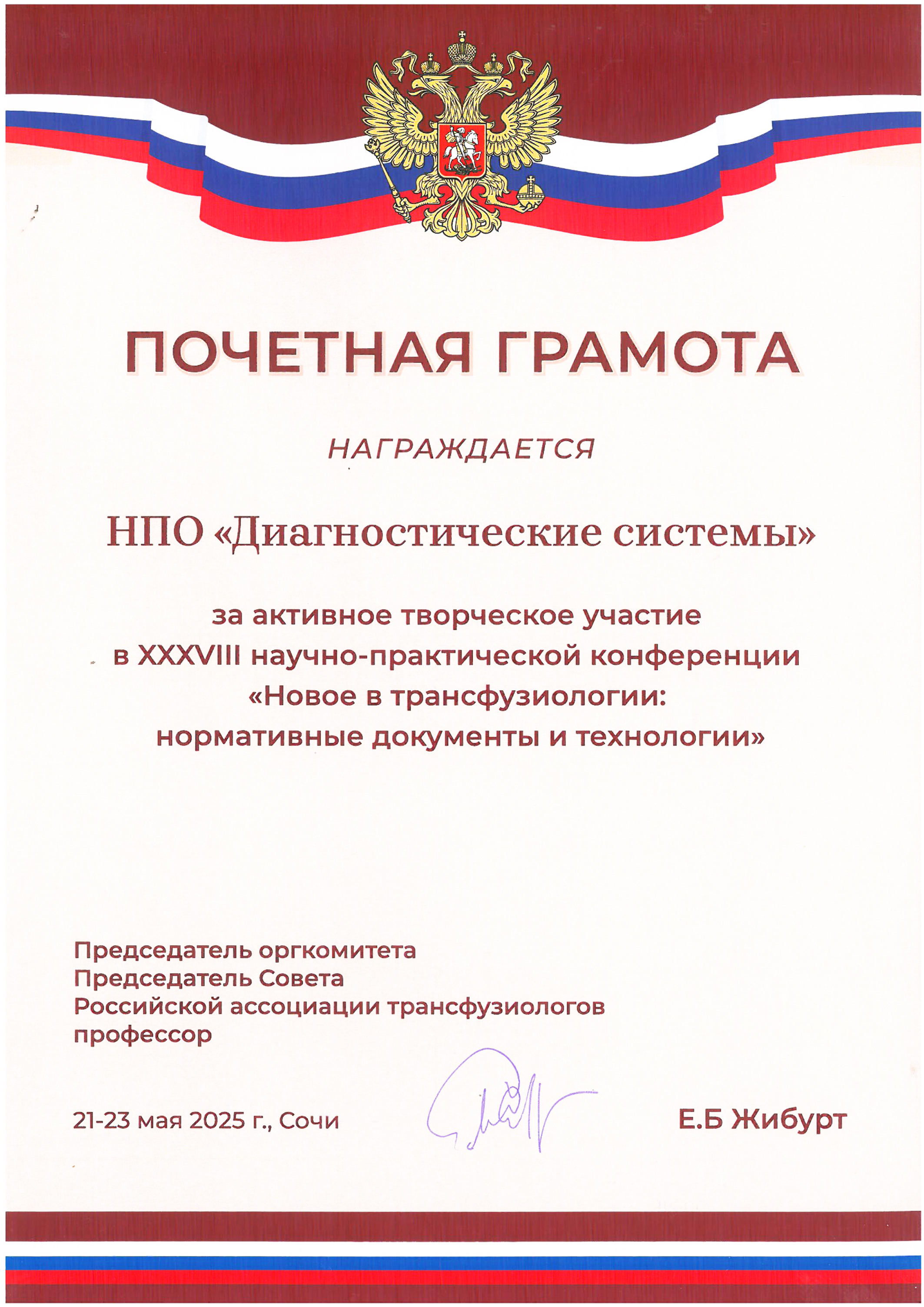 21-23 мая 2025 г. в Сочи прошла традиционная XXXVIII Всероссийская научно-практическая конференция (НПК) «Новое в Трансфузиологии. Нормативные документы и технологии».