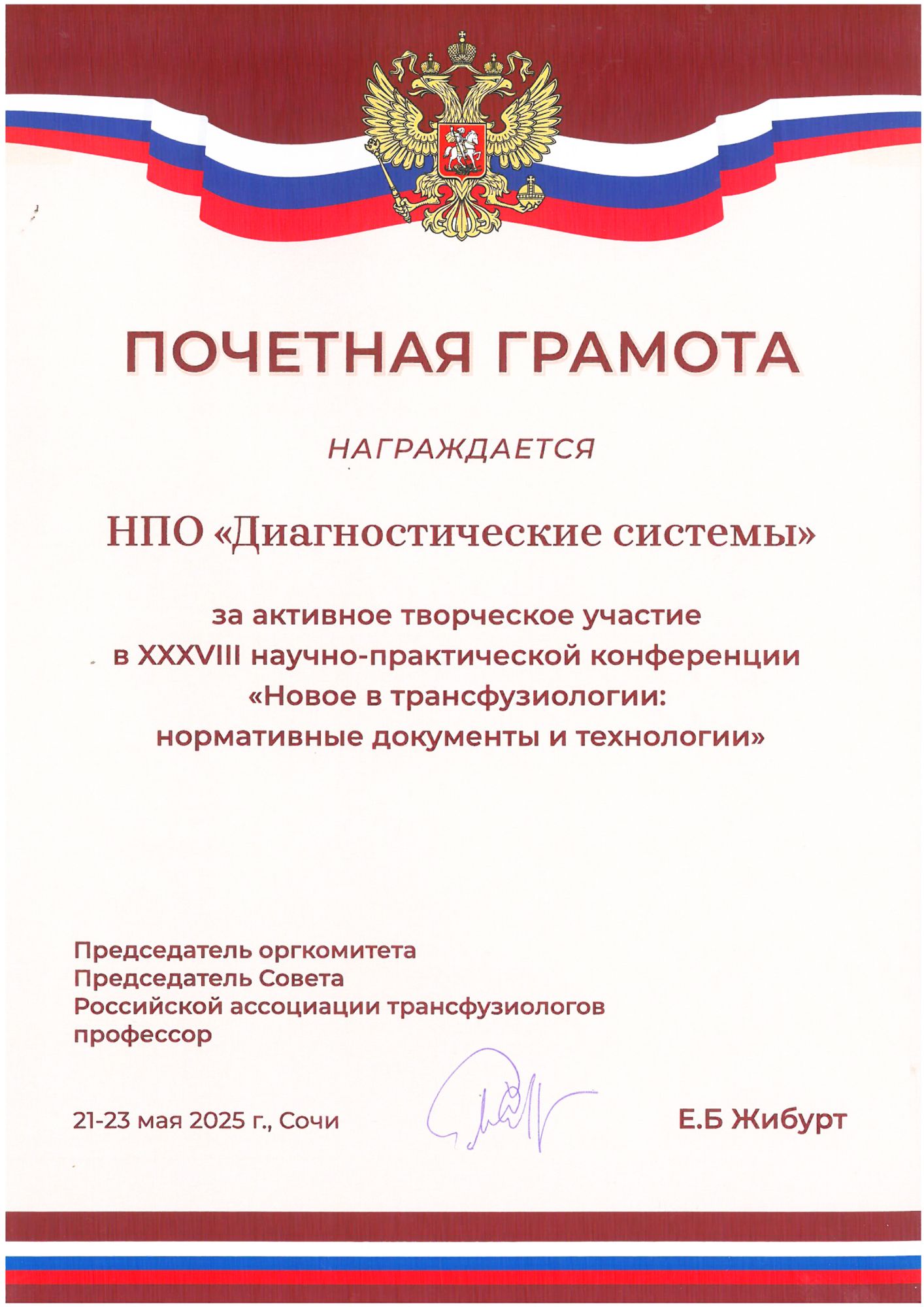 21-23 мая 2025 г. в Сочи прошла традиционная XXXVIII Всероссийская научно-практическая конференция (НПК) «Новое в Трансфузиологии. Нормативные документы и технологии».